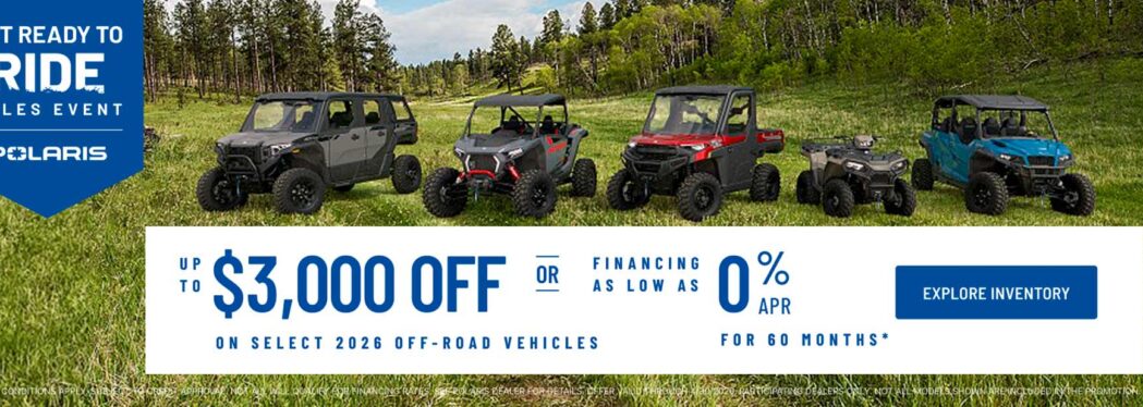 Huge inventory of top-tier vehicles from Polaris®, Can-Am®, Honda®, and more.Adventure-Ready Support
