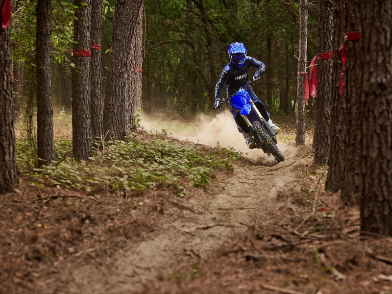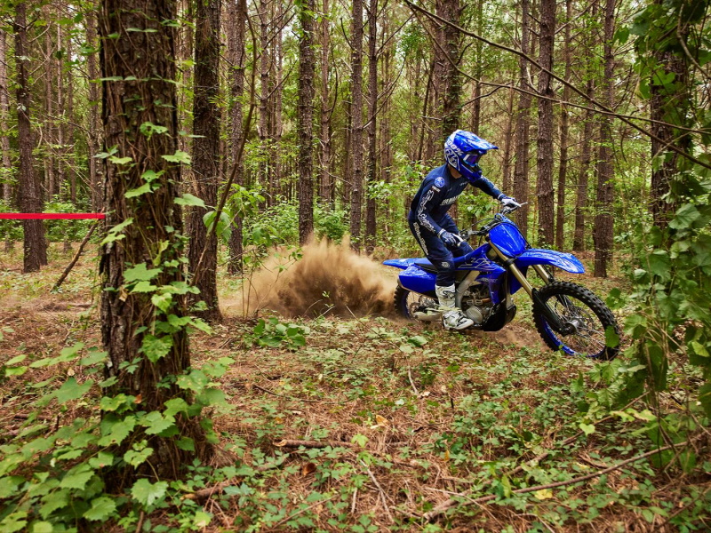 The highly developed aluminum bilateral beam frame features precisely tuned flex characteristics for competition-ready performance. The forged section at the swingarm pivot, and improved engine mounting brackets provide a nimble lightweight feeling in tight, technical terrain while still providing control in fast sections. As always, Yamaha’s class-leading KYB® suspension ensures maximum control and traction. - Cross Country Features
