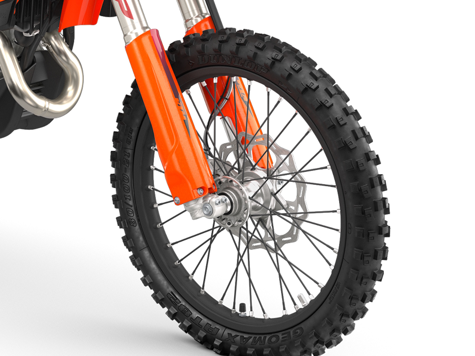 Getting READY TO RACE has never been easier. The KTM 450 XCF-W boasts a tool-free suspension setup at both ends. At the rear, our legendary, race-winning PDS technology features hand-adjustable dual compression controls, allowing riders to adjust high- and low-speed settings in a matter of seconds. On the front, the forks are also easily adjusted thanks to hand-adjustable clickers on the bottom of the fork shoe and on the fork top cap, making changing settings on the fly as easy as twisting the throttle.