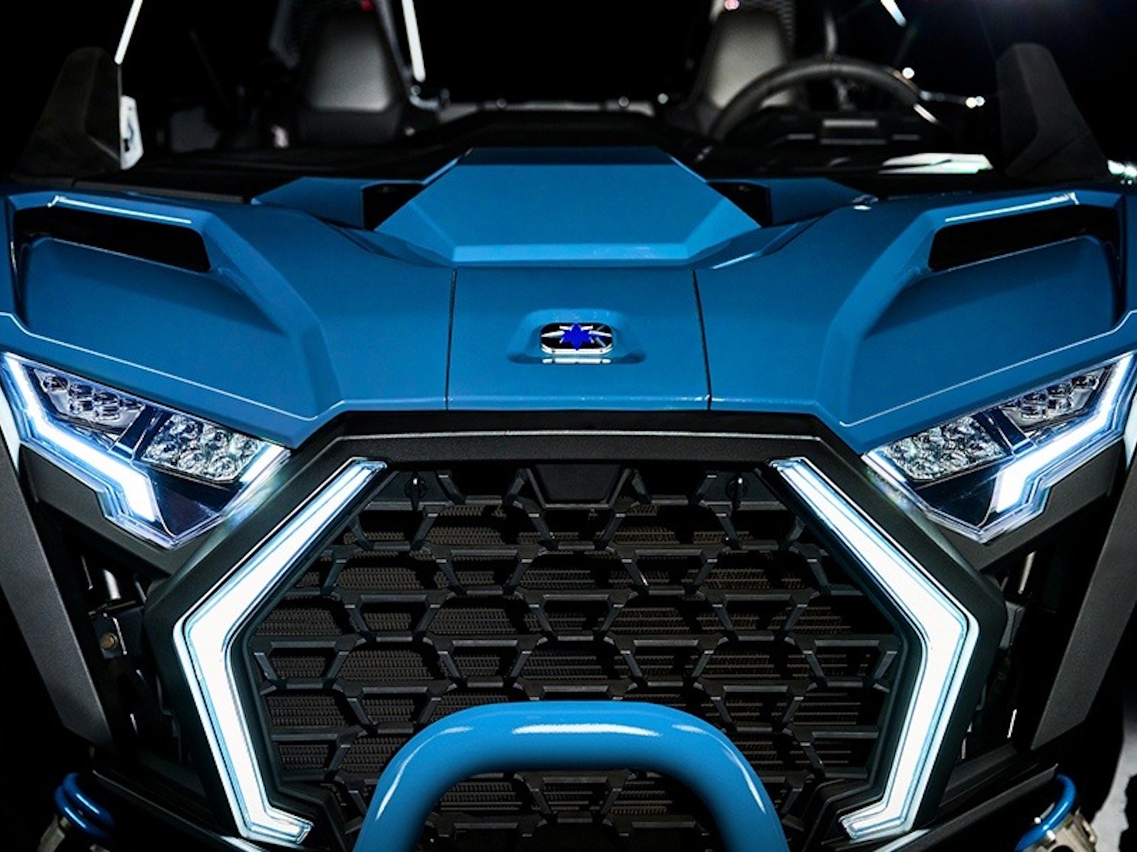 Signature animated RZR Fang Accent Lighting; white LED low/high and red LED tail/brake lights; animated interior accent lighting.