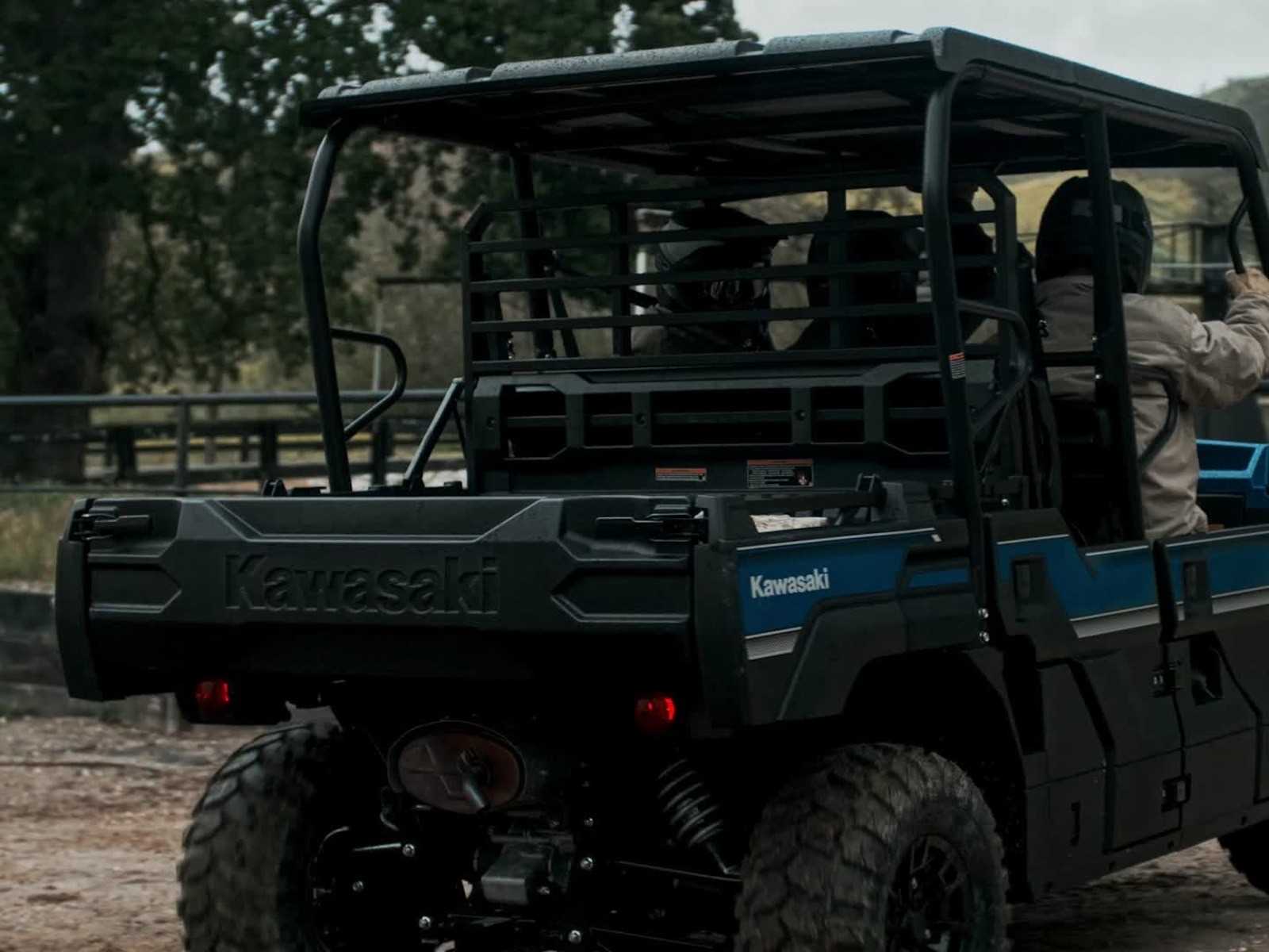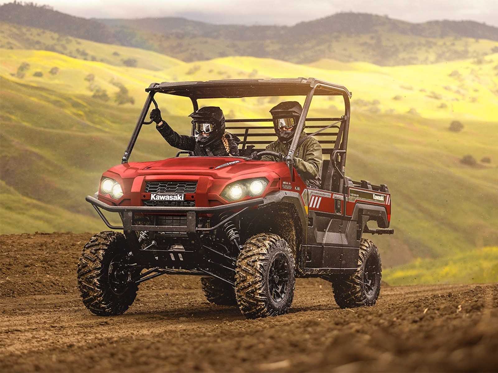 The Kawasaki MULE PRO-FXR™ 1000 side x side takes the rugged capability of MULE™ PRO side x sides to the trails. Turn everyday riding into an unrivaled experience with the combination of comfort, capability, and aggressive styling. With a compact size, high-capacity engine, and 3-passenger seating, the MULE PRO-FXR 1000 is ready to put in the work and then cut loose when the chores are done.