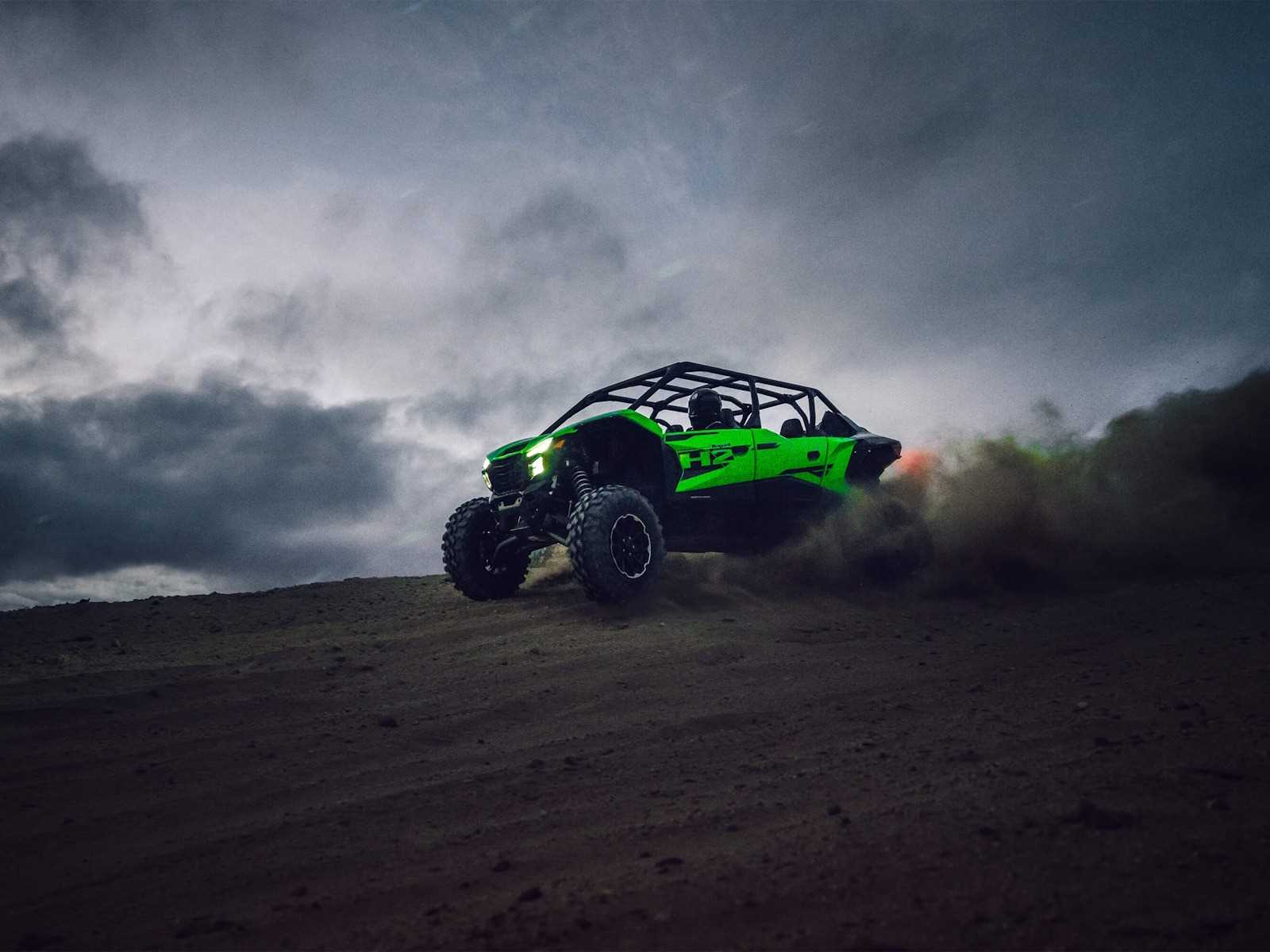 The all-new Teryx®4 H2 and Teryx®5 H2 high-performance side x sides are designed for dune and desert domination. The 250-HP¹ 999cc in-line 4-cylinder supercharged engine is harnessed by a continuously variable transmission (CVT) and a highly rigid frame complemented by long-travel suspension that helps balance the engine's massive power for maximum control. Predictable handling and confident stopping power add to the well-balanced package delivering maximum fun that can be shared with the whole family.