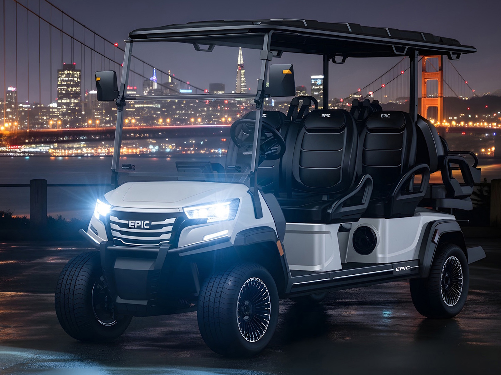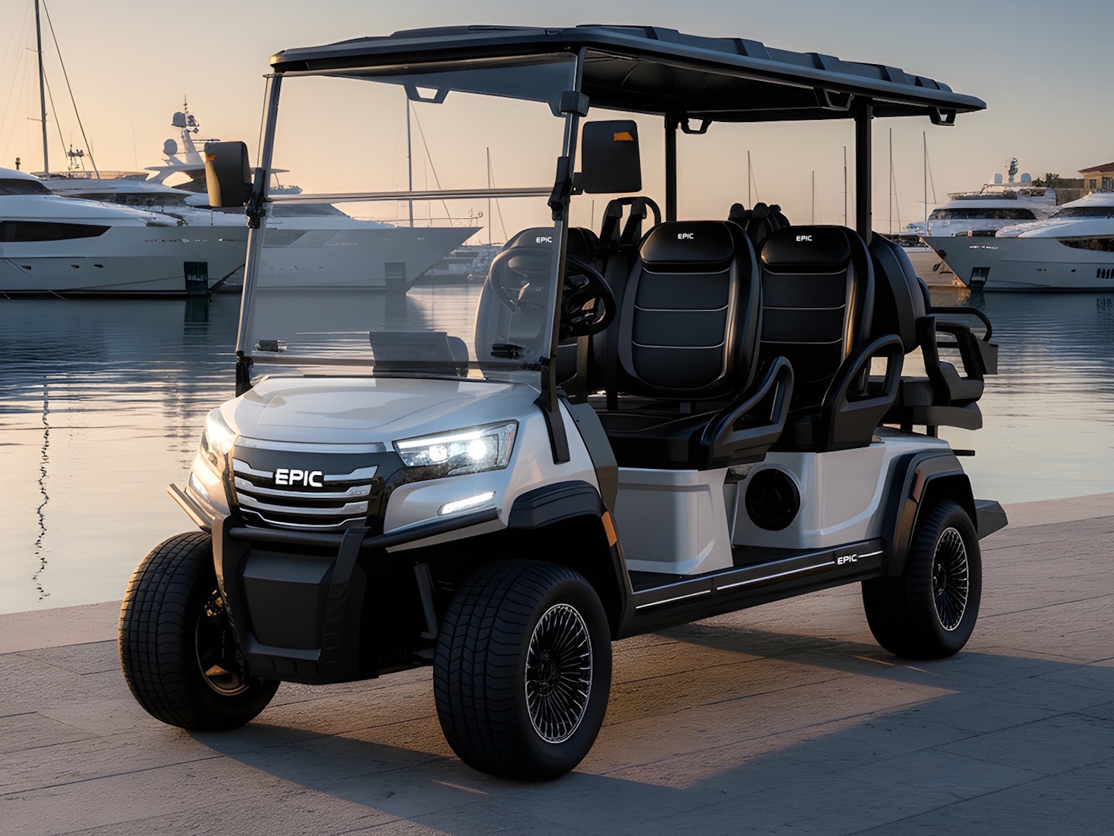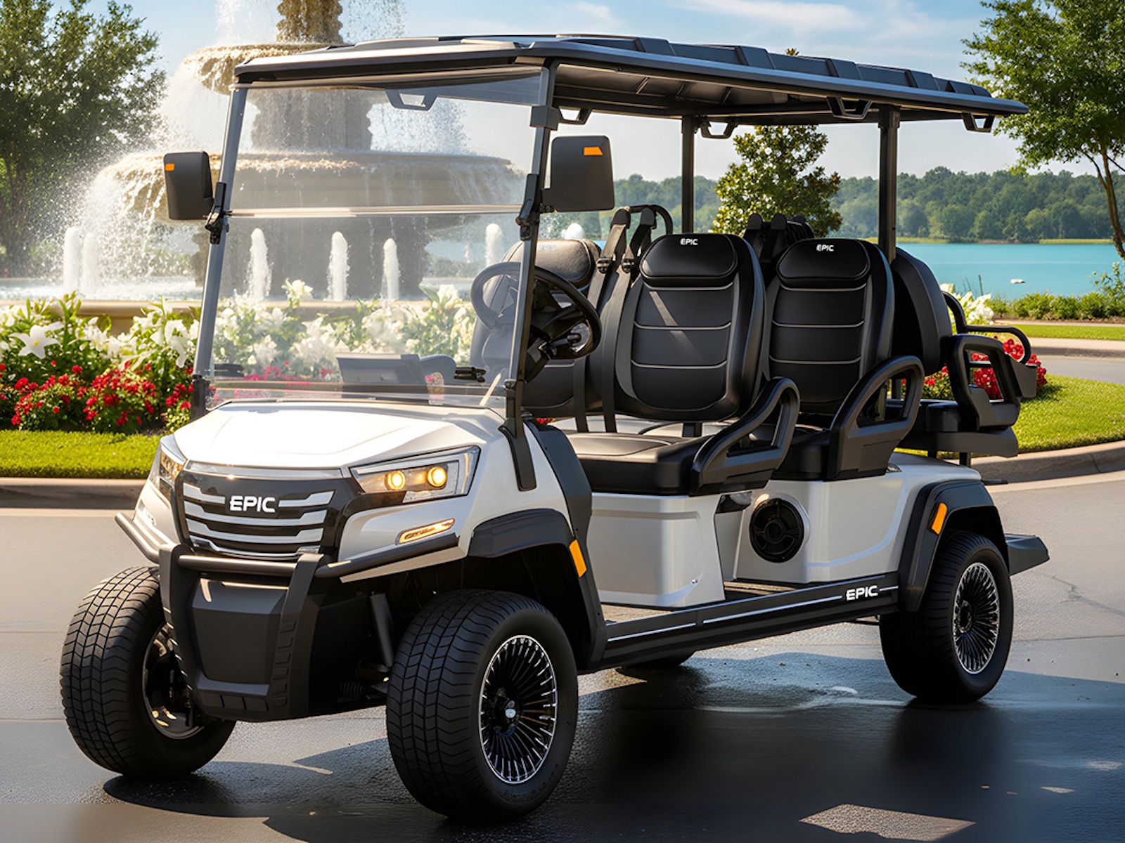 The brand new Epic E60FX is the most in-demand golf cart that is taking the industry by storm! This ultimate street-legal 6-seater golf cart is equipped with premium 14” street-ready tires that provide an ultra smooth ride. Play the tunes loud on its superior built-in marine-grade sound system, and turn heads with the stunning accent lighting adorned throughout. This Epic E60FX golf cart comes in six stylish colors and two height options to cater to your golf cart lifestyle.