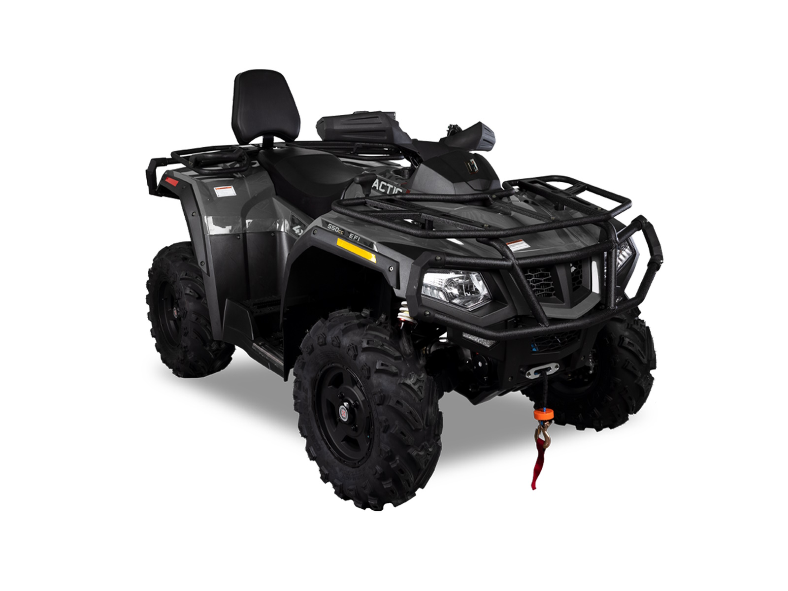 The full-size Tactic 550 EPS 2-Up comes equipped with a 4-Stroke OHV 546cc Single Cylinder EFI Engine and 4-Wheel drive giving you the ability to take on the toughest trails. The Dual A-Arm Nitrogen Assisted Shocks give the Tactic 550 a smooth unforgettable ride. The Tactic’s front and rear cargo racks and a 2500LB Winch make it the right choice for your off-road adventure.