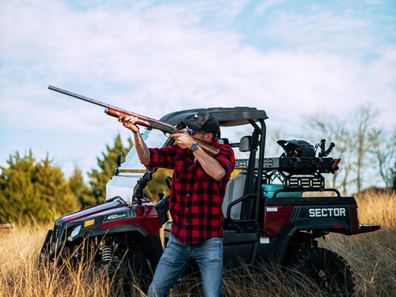 The Sector 450 is the perfect mid-sized UTV with all the features and power of a full-size UTV. Standard with a Roof, Windshield, Side Mirrors, Turn Signals, Winch and aluminum wheels making the Sector 450 the ultimate mid-size Side-X-Side. Packed with a 454cc Single Cylinder EFI Engine with 4-Wheel Drive to help get you to your desired destination. Dual A-Arm Nitrogen Assisted shocks make every arrival smooth.