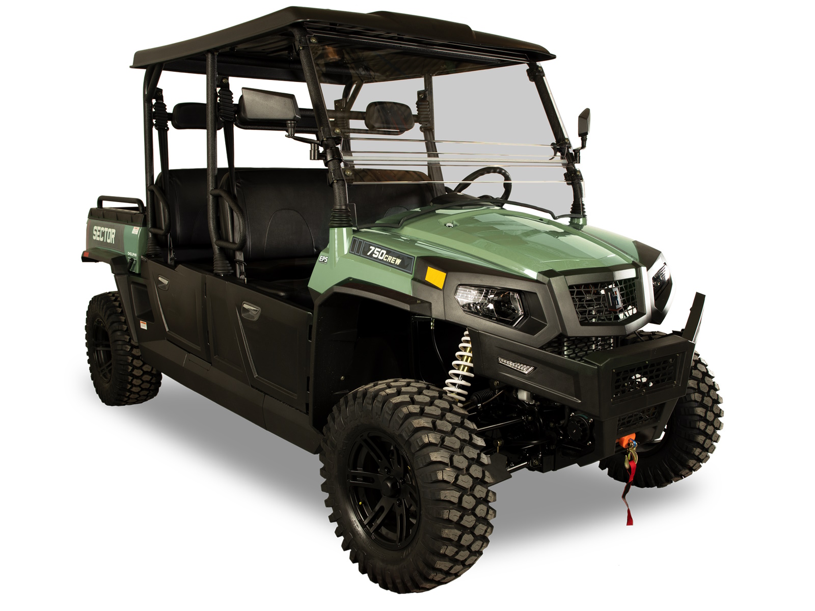 Bring your entire crew along in the new Sector 750 Crew. Fully equipped with a Roof, Windshield, Side Mirrors, Turn Signals, Aluminum Rims, and a 3,500LB winch the Sector 750 Crew is raising the industry standards for a four-passenger Side-X-Side. Whether at work or play this Sector is built to take on the trails or rip through the fields, make the most of your ride with friends and family.