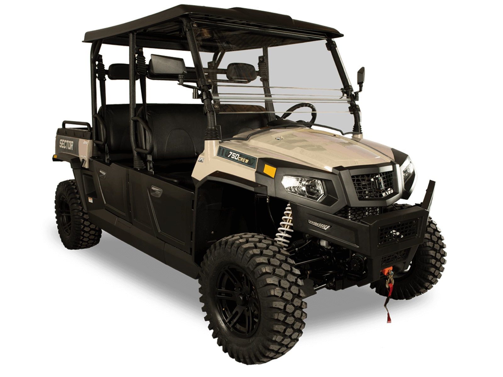 Bring your entire crew along in the new Sector 750 Crew. Fully equipped with a Roof, Windshield, Side Mirrors, Turn Signals, Aluminum Rims, and a 3,500LB winch the Sector 750 Crew is raising the industry standards for a four-passenger Side-X-Side. Whether at work or play this Sector is built to take on the trails or rip through the fields, make the most of your ride with friends and family.