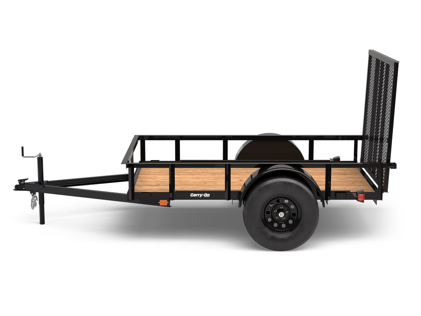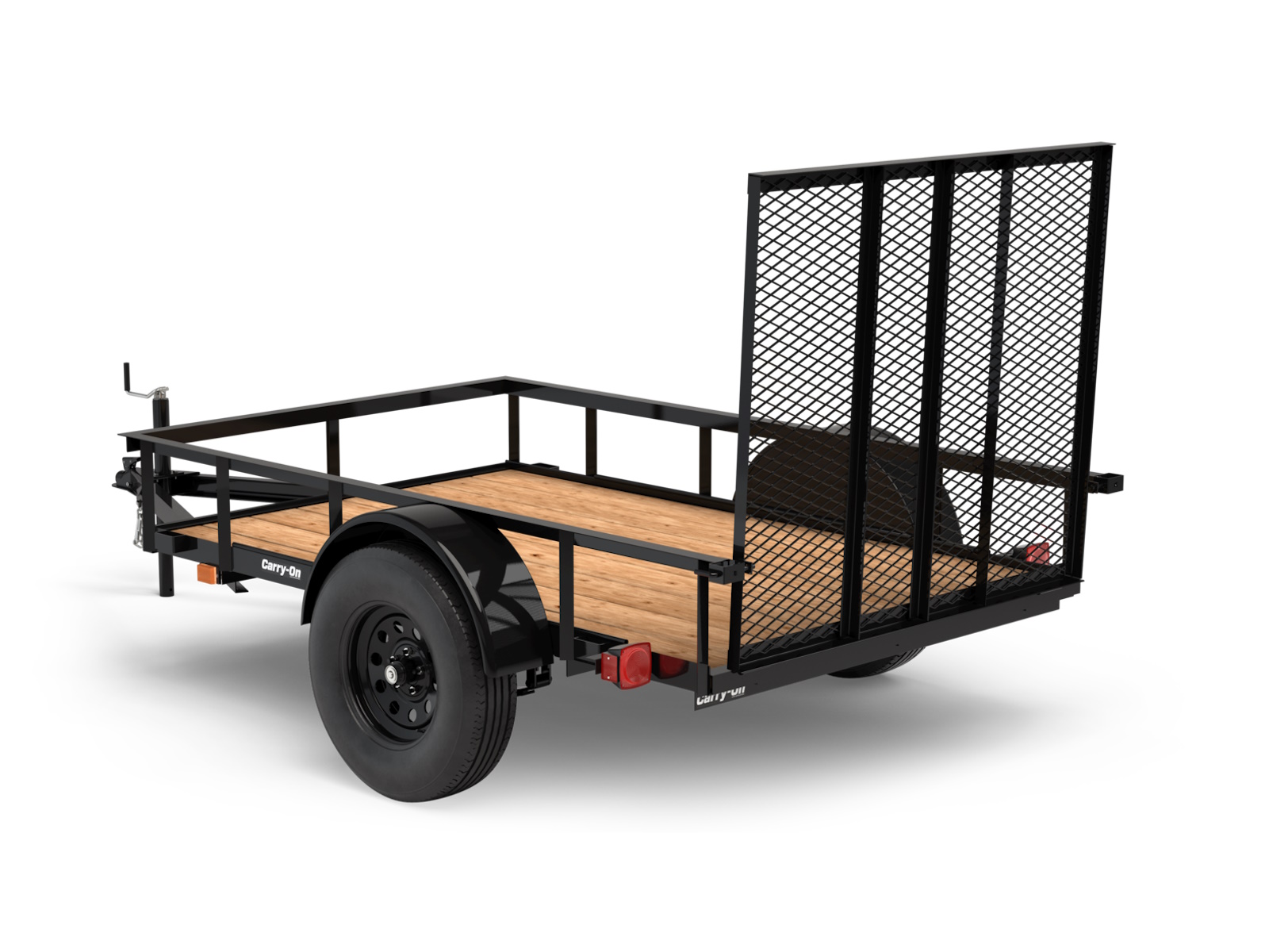 The gate serves as a convenient ramp for easy loading and unloading or can fold into the trailer bed to accommodate larger cargo, reducing wind resistance during transport.