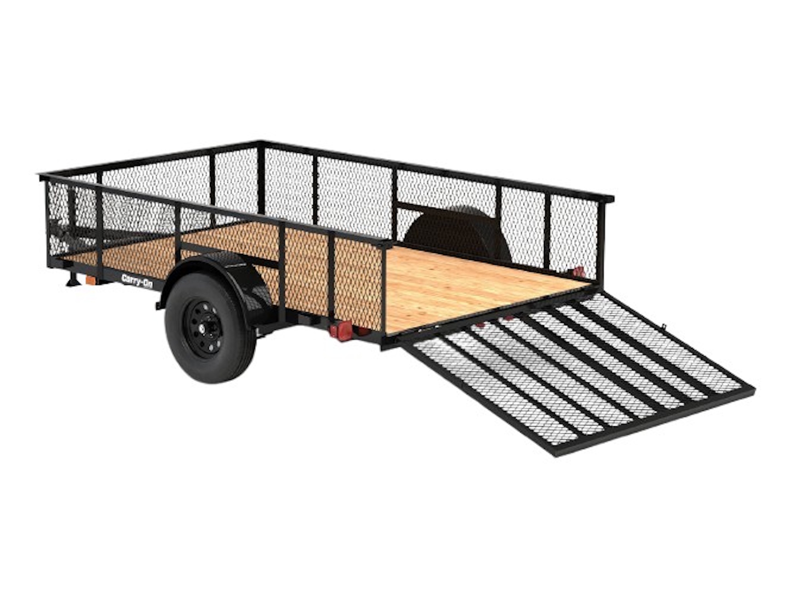 - The gate serves as a convenient ramp for easy loading and unloading or can fold into the trailer bed to accommodate larger cargo, reducing wind resistance during transport.