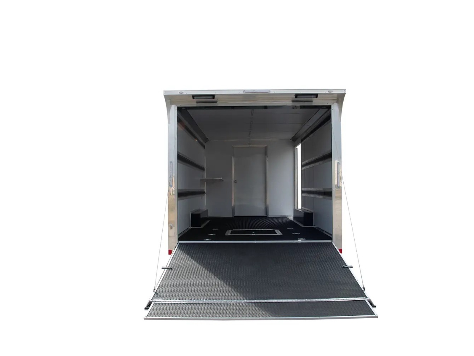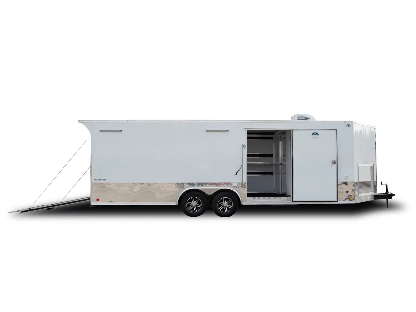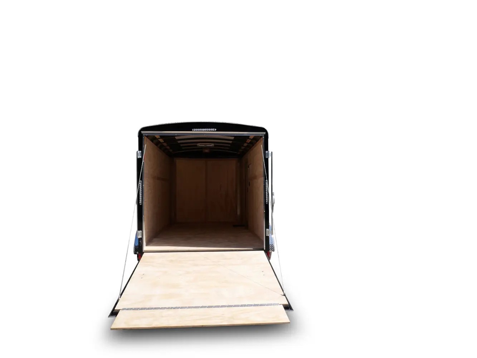 Tailwind cargo trailers range in size from a 5’ x 8’ single axle to 8’ x 24’ tandem axle model. Electric brakes are standard on 6' wide tandem axle trailers and larger. The 5’ - 7’ wide single axle models offer a standard payload capacity of 1,550 to 2,040 lb. while the 6’ - 8’ wide tandem axle models offer a standard payload capacity of 3,800 - 5,350 lb. Double barn doors are the standard rear door for the Tailwind cargo trailers with an optional ramp door available.