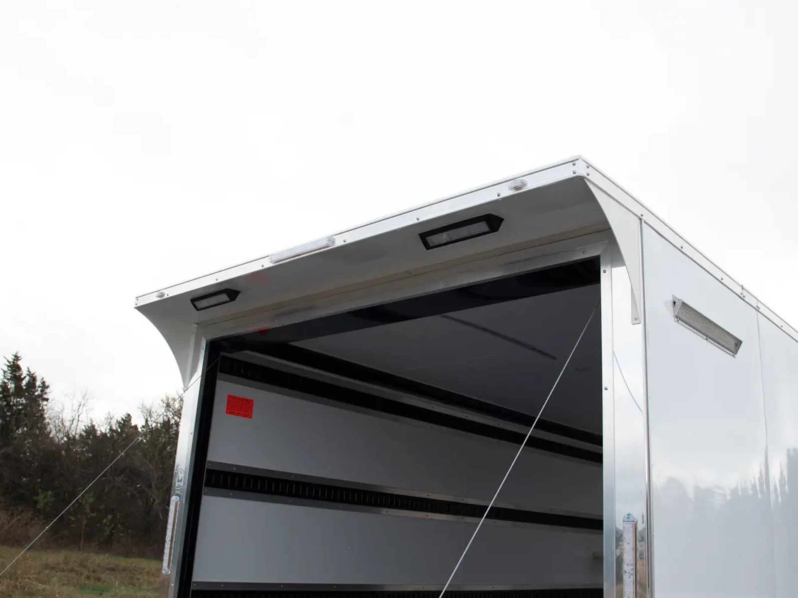 2 – Interior LED Dome Lights, and1 – Wall Switch | Clear Lens LED Clearance Lights | Clear Lens LED Strip Tail Lights | Molded License Plate Holder andLight