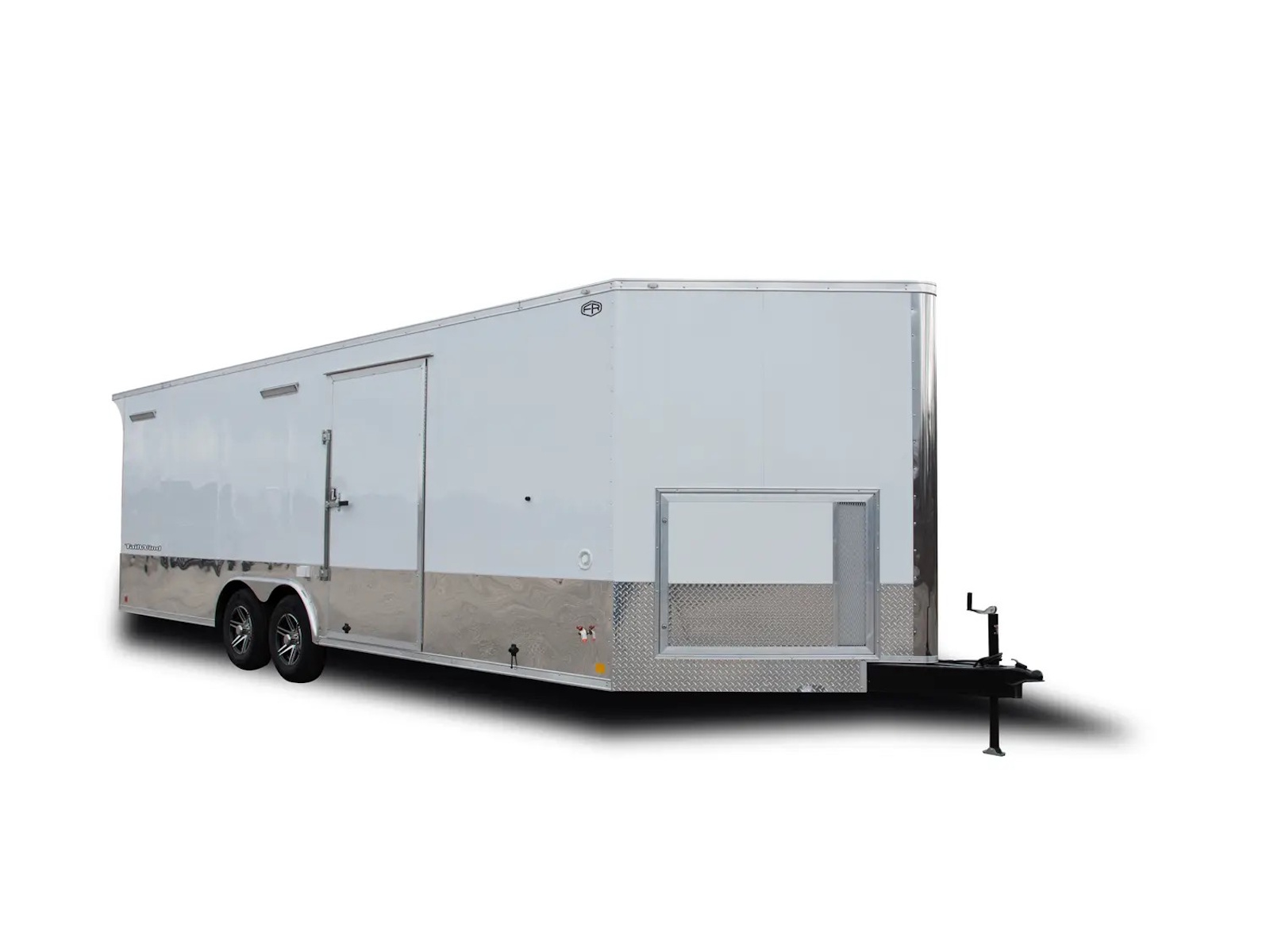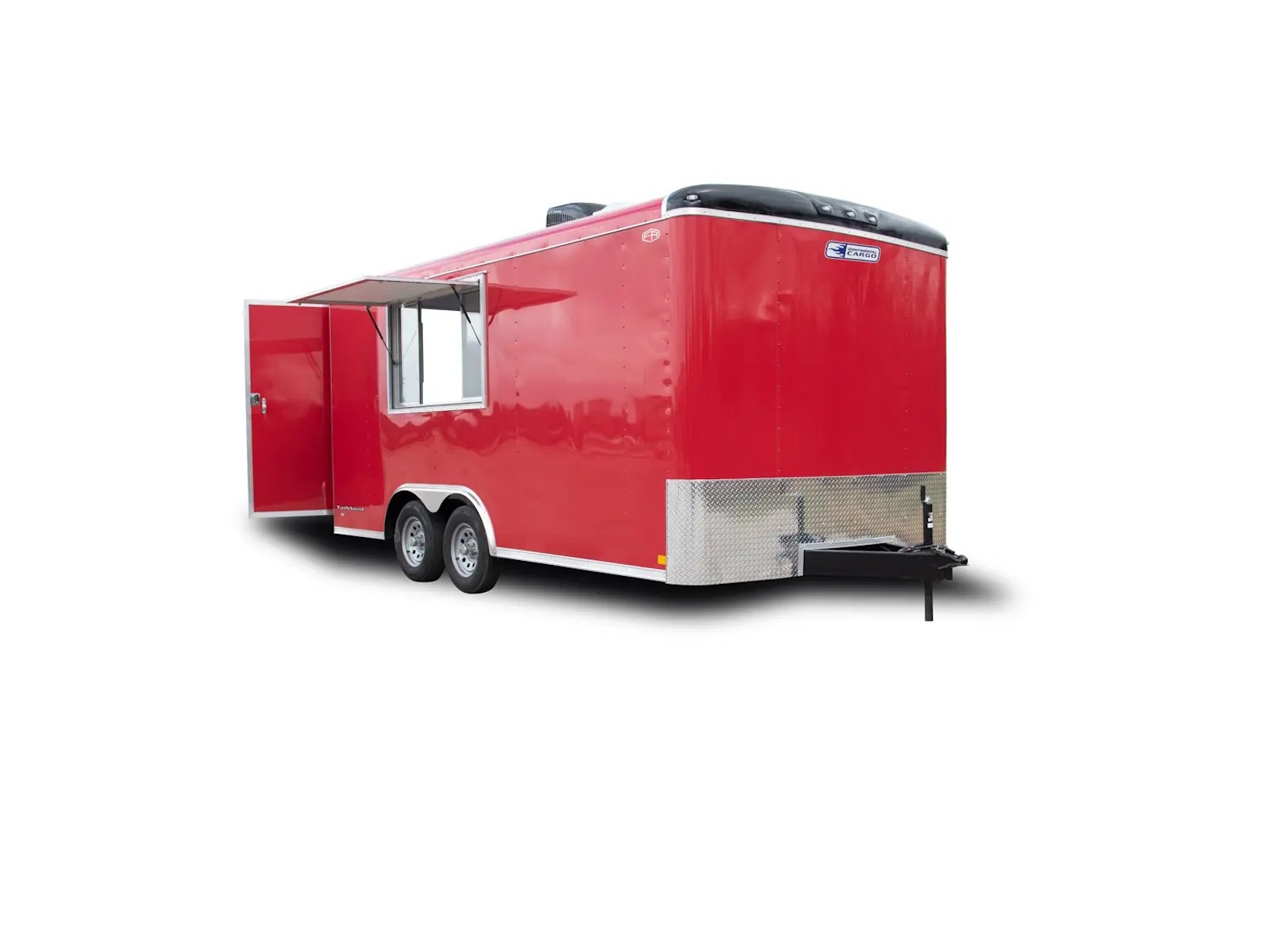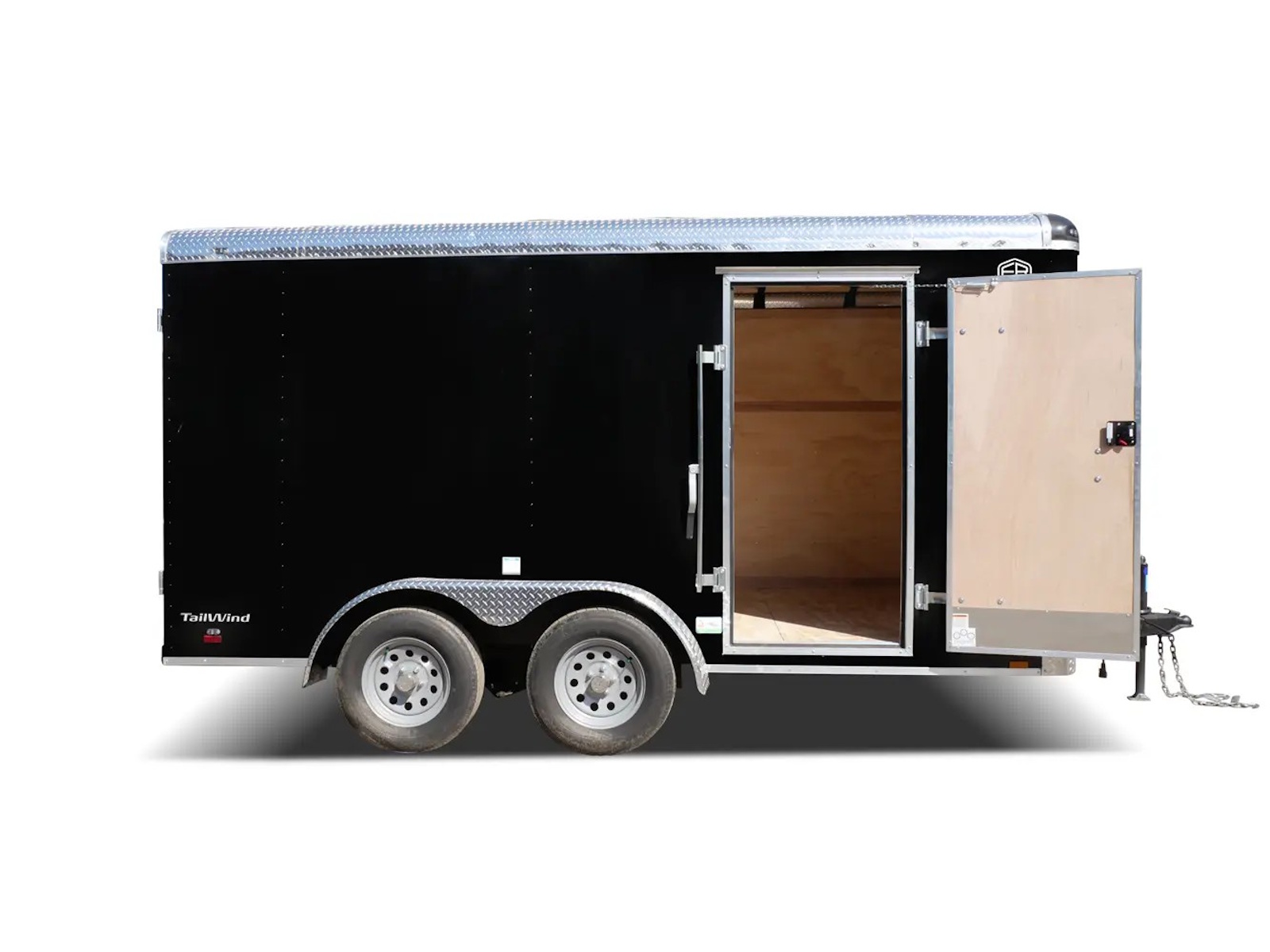Tailwind cargo trailers range in size from a 5’ x 8’ single axle to 8’ x 24’ tandem axle model. Electric brakes are standard on 6' wide tandem axle trailers and larger. The 5’ - 7’ wide single axle models offer a standard payload capacity of 1,550 to 2,040 lb. while the 6’ - 8’ wide tandem axle models offer a standard payload capacity of 3,800 - 5,350 lb. Double barn doors are the standard rear door for the Tailwind cargo trailers with an optional ramp door available.
