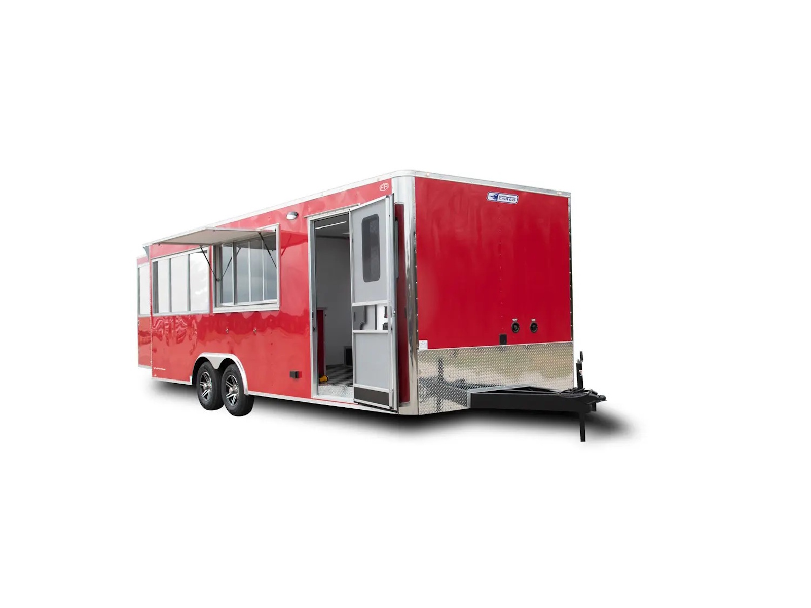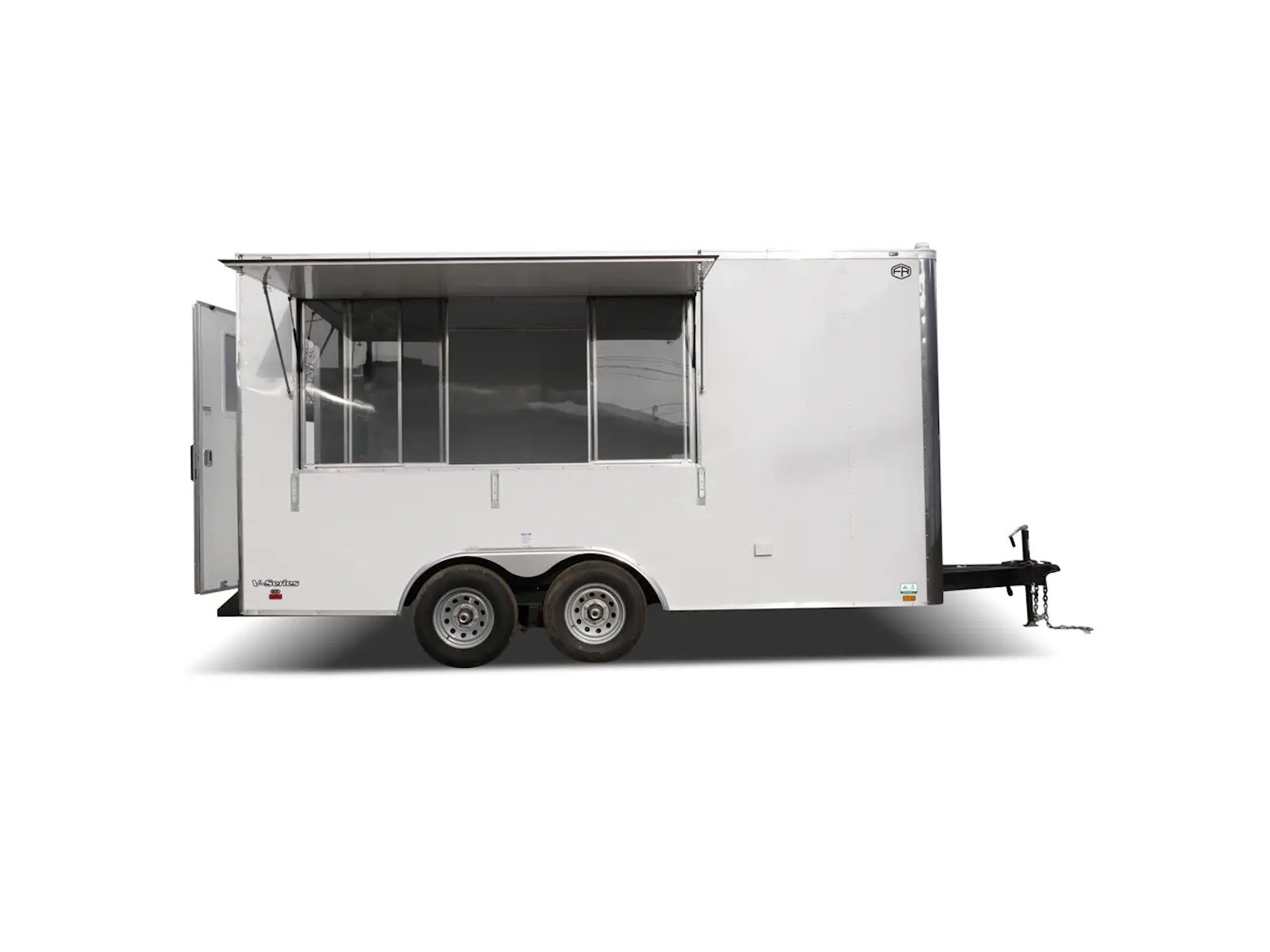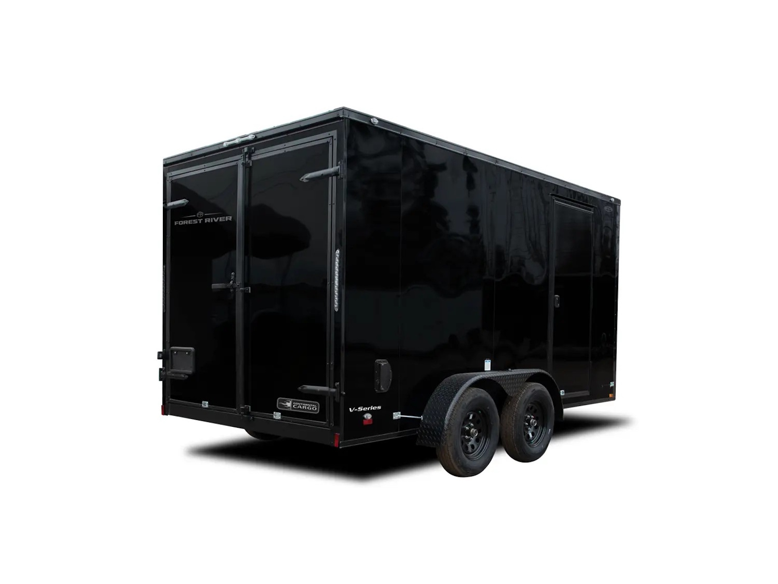V-Series trailers range in size from a 5’ x 8’ single axle to a 8’ x 20’ tandem axle model. They feature an 18" front wedge for extra storage space and easier towing. The 5’ - 6’ wide models offer a standard payload capacity from 1,200 - 5,400 lb. while the 7’ - 8’ wide models offer a capacity of 1,900 - 3,900 lb. Double Barn doors are the standard rear door for the V-Series cargo trailers with an optional ramp door available.