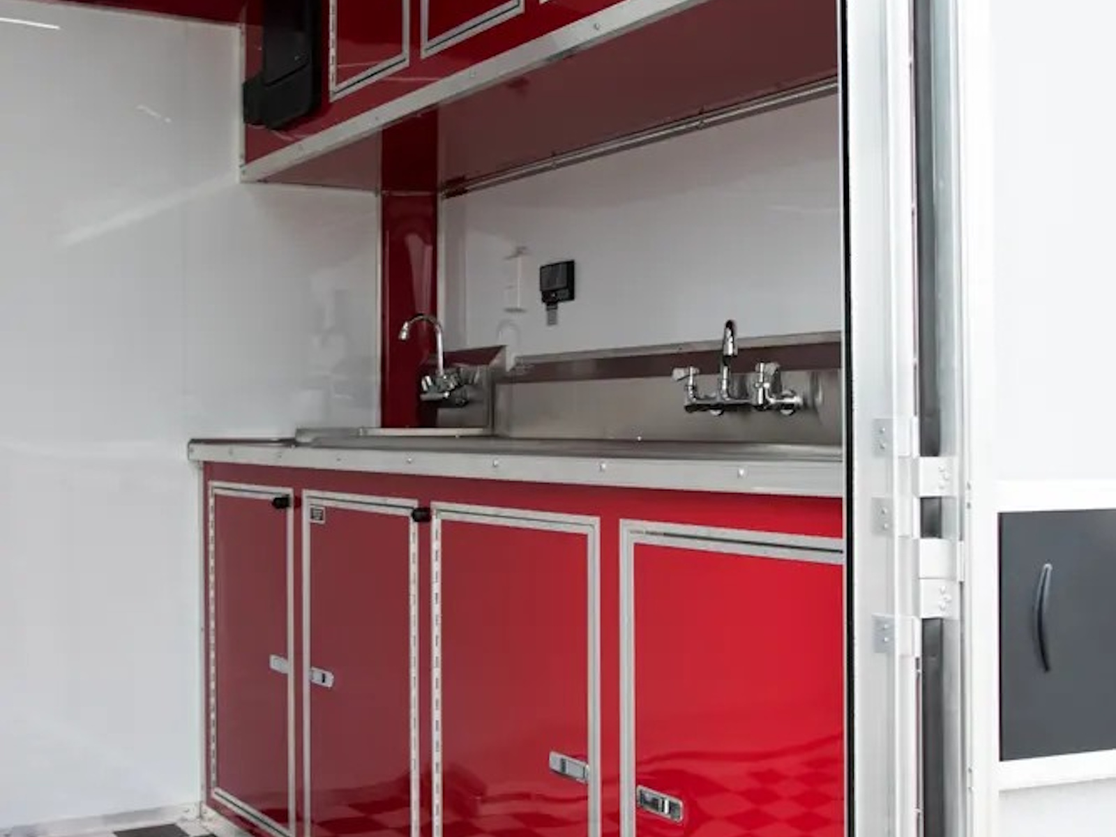 36" Side Door with Steel Step | Double Rear Doors | Semi-Style Camlock Door Latch | Door Hold-Back on Rear Door