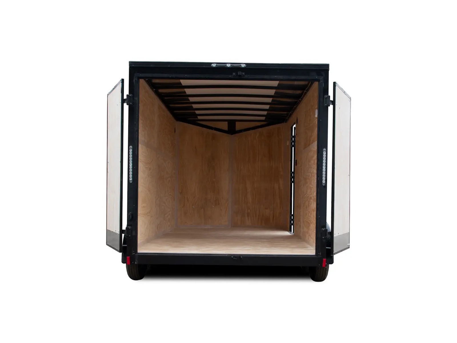 V-Series trailers range in size from a 5’ x 8’ single axle to a 8’ x 20’ tandem axle model. They feature an 18" front wedge for extra storage space and easier towing. The 5’ - 6’ wide models offer a standard payload capacity from 1,200 - 5,400 lb. while the 7’ - 8’ wide models offer a capacity of 1,900 - 3,900 lb. Double Barn doors are the standard rear door for the V-Series cargo trailers with an optional ramp door available.