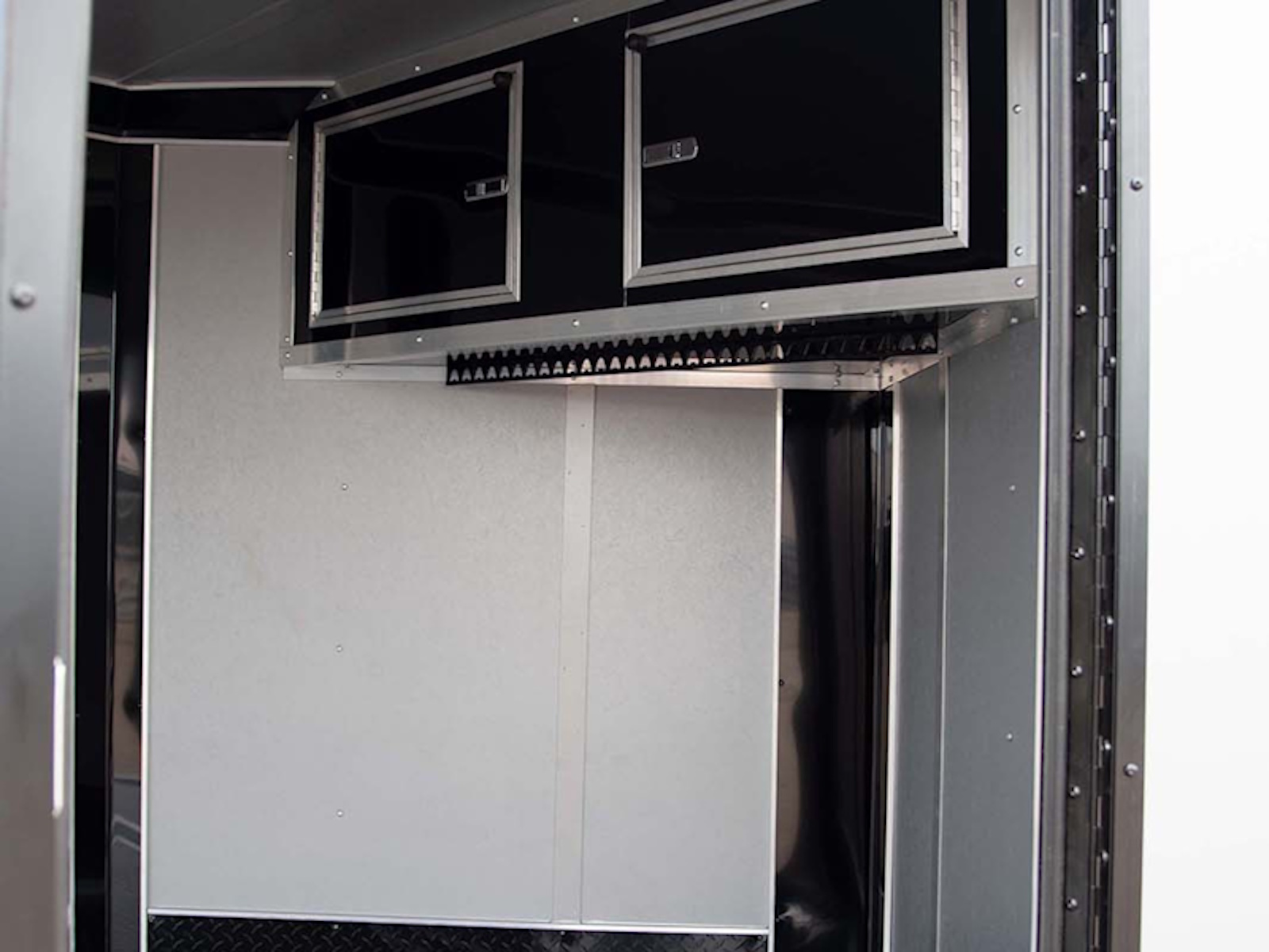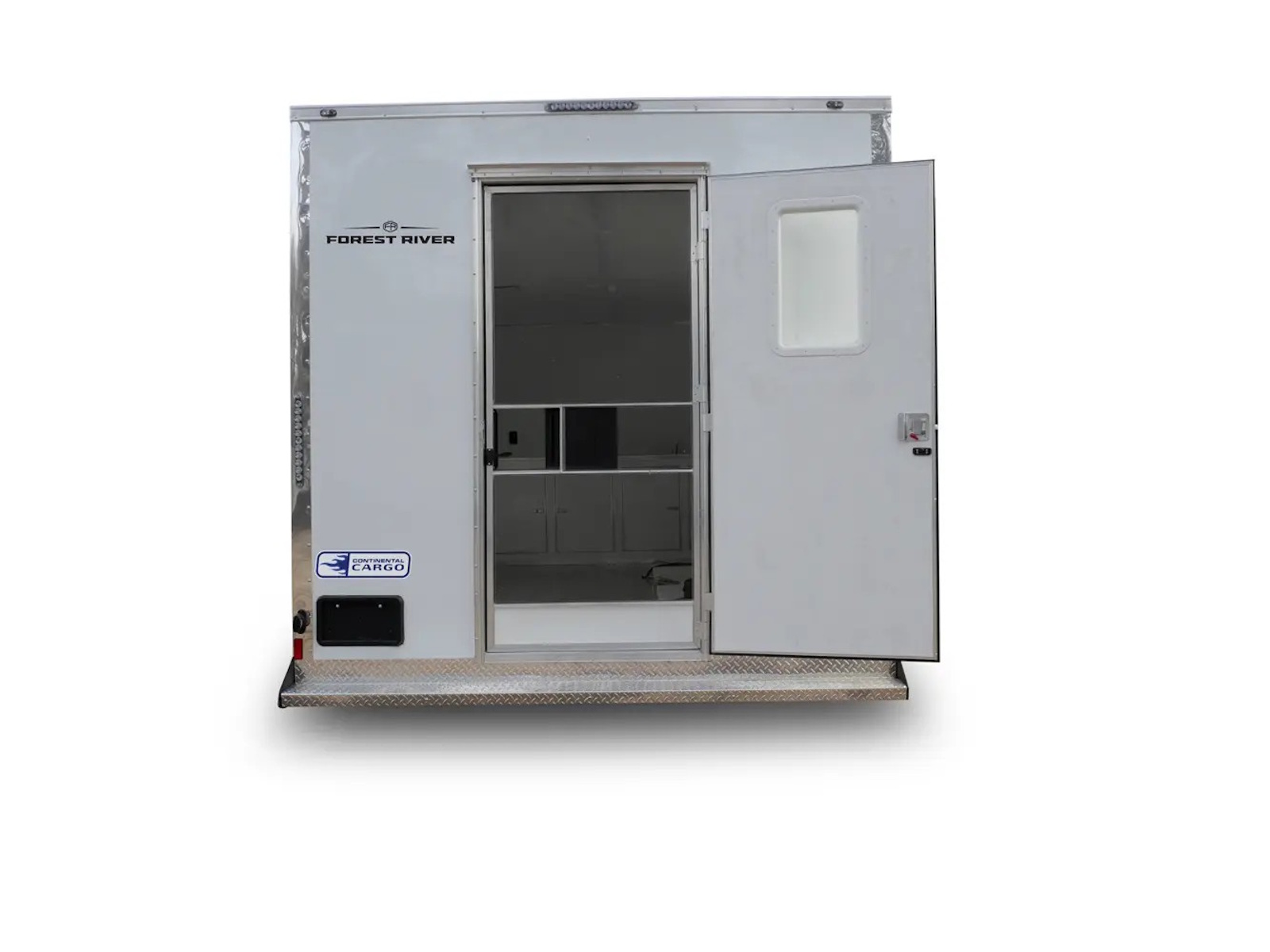 36" Side Door with Steel Step | Double Rear Doors | Semi-Style Camlock Door Latch | Door Hold-Back on Rear Door