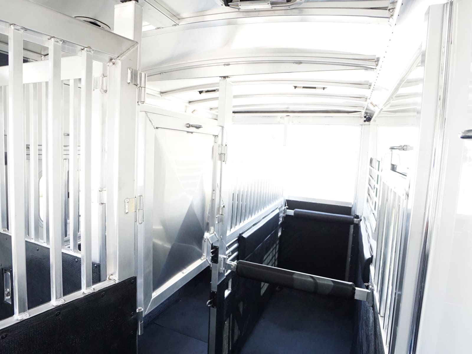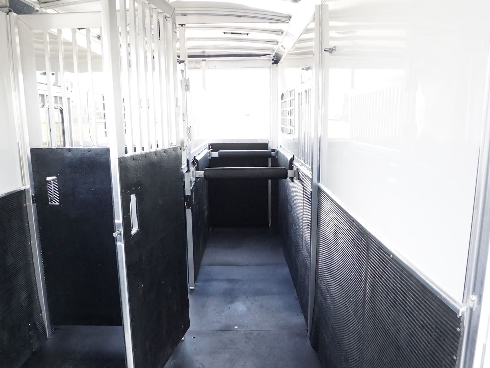 A 2+1 straight load trailer features two rear stalls for horses to load from the back and stand side-by-side facing forward. The additional space at the front can accommodate a third horse, serve as a rear tack room, or provide extra storage. This versatile design enhances the trailer’s functionality, offering flexibility for various transport needs. With durable construction, excellent ventilation, and customizable options, the 2+1 straight load trailer provides comfort and safety for your horses.