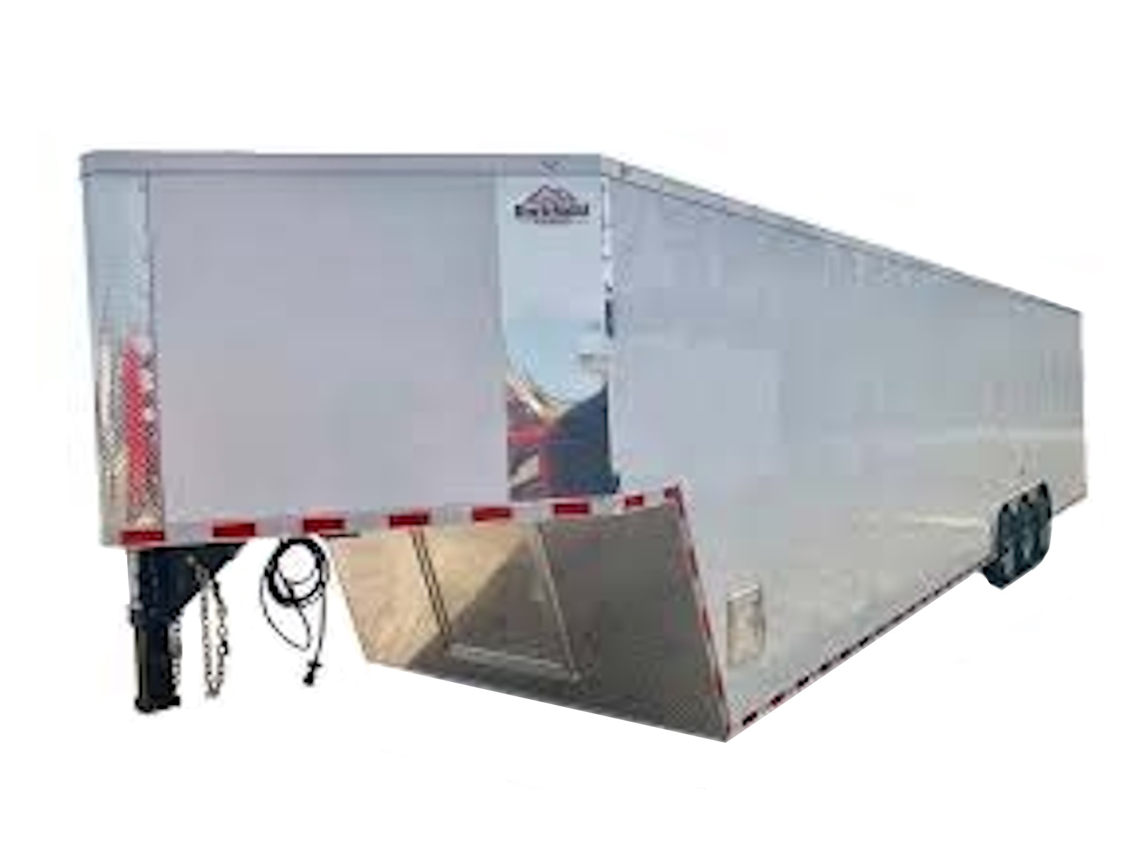 Introducing the Gooseneck Cargo Trailer, the pinnacle of towing efficiency and capacity for those who demand superior hauling capabilities. Engineered with a distinctive gooseneck hitch design, this trailer offers unparalleled stability and maneuverability, making it ideal for both commercial and heavy-duty recreational use.