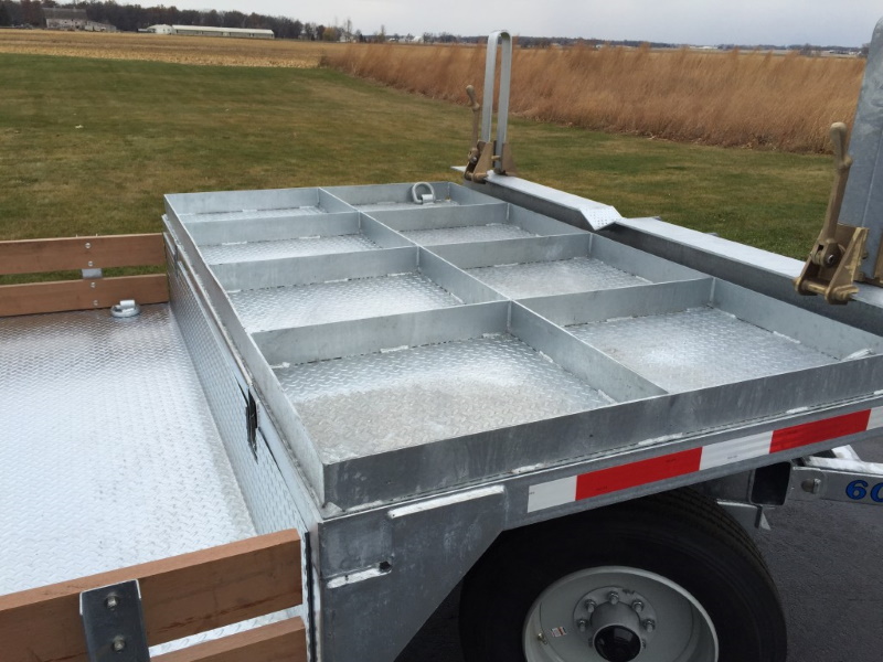 3/16″ Treadplate w/ 12″H x 2″ Apitong removable sides and rear with (8) heavy duty D-rings.