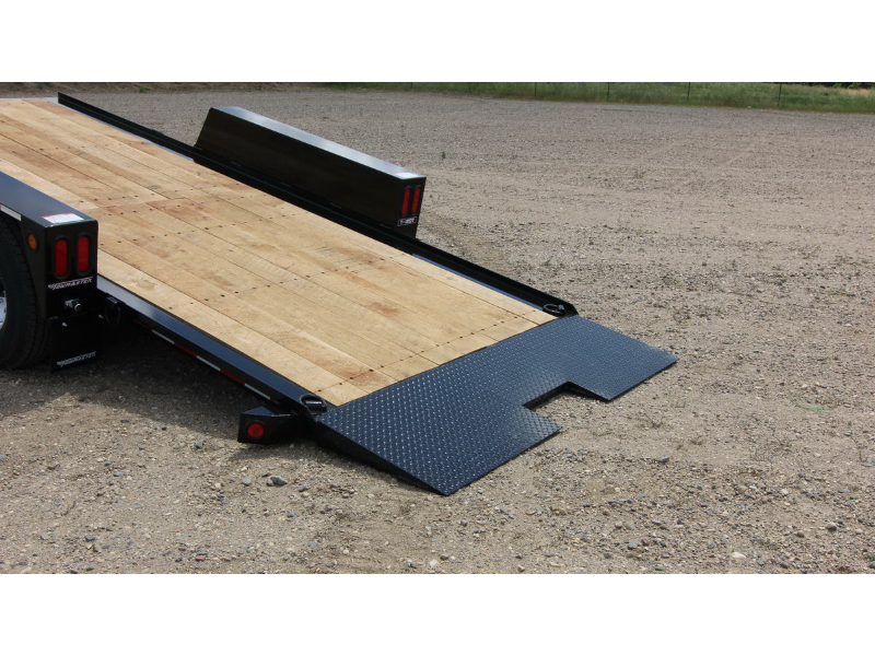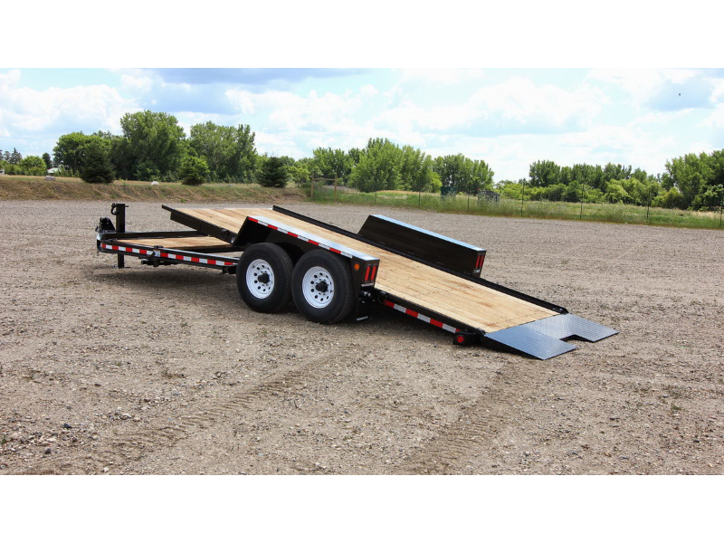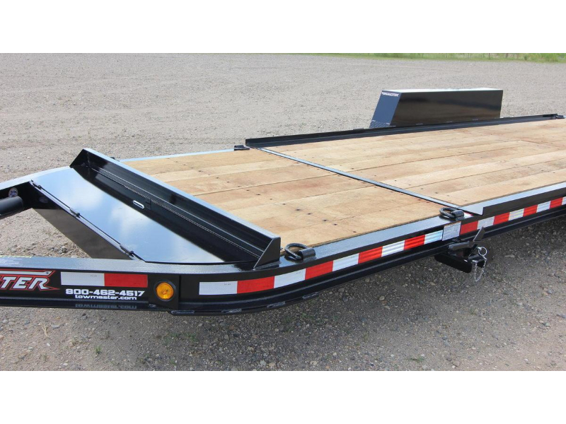 The Towmaster® drop-deck tilt trailers are popular with rental dealers and small contractors. There are no ramps to hassle with; simply tilt the deck and drive on or off. This trailer is built on our cold-formed I-beam tongue and main frame for tough durability. The tilt deck trailer features a single lever twin-latch system, knife-edge approach plate, rubber-ride axles and adjustable hitch. A deck cushion cylinder eases the deck back into transport position and prevents equipment from slamming the deck down.