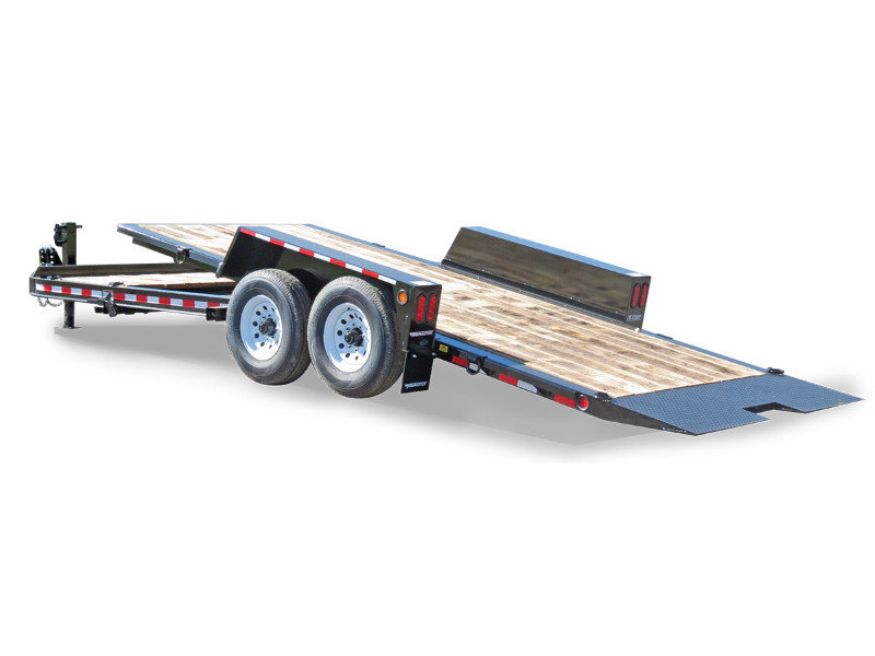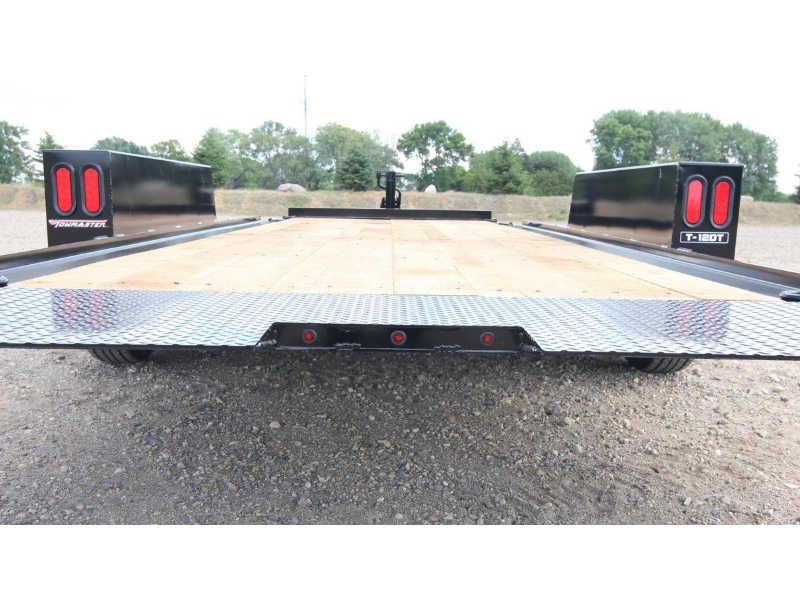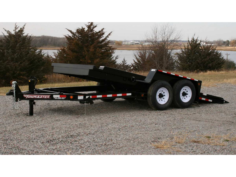 The Towmaster® drop-deck tilt trailers are popular with rental dealers and small contractors. There are no ramps to hassle with; simply tilt the deck and drive on or off. This trailer is built on our cold-formed I-beam tongue and main frame for tough durability. The tilt deck trailer features a single lever twin-latch system, knife-edge approach plate, rubber-ride axles and adjustable hitch. A deck cushion cylinder eases the deck back into transport position and prevents equipment from slamming the deck down.